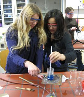 In der AG steht stets das eigene Experimentieren im Vordergrund. Spielerisch lernen die Schülerinnen und Schüler dabei nicht nur das Fach, sondern auch wichtige Fertigkeiten der Chemie kennen (z.B. Bedienung des Gasbrenners, Glasbearbeitung, wichtige Labortechniken…).