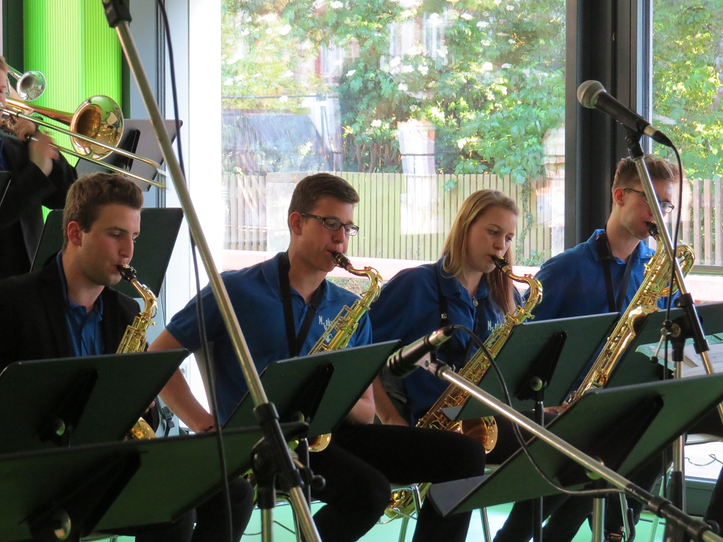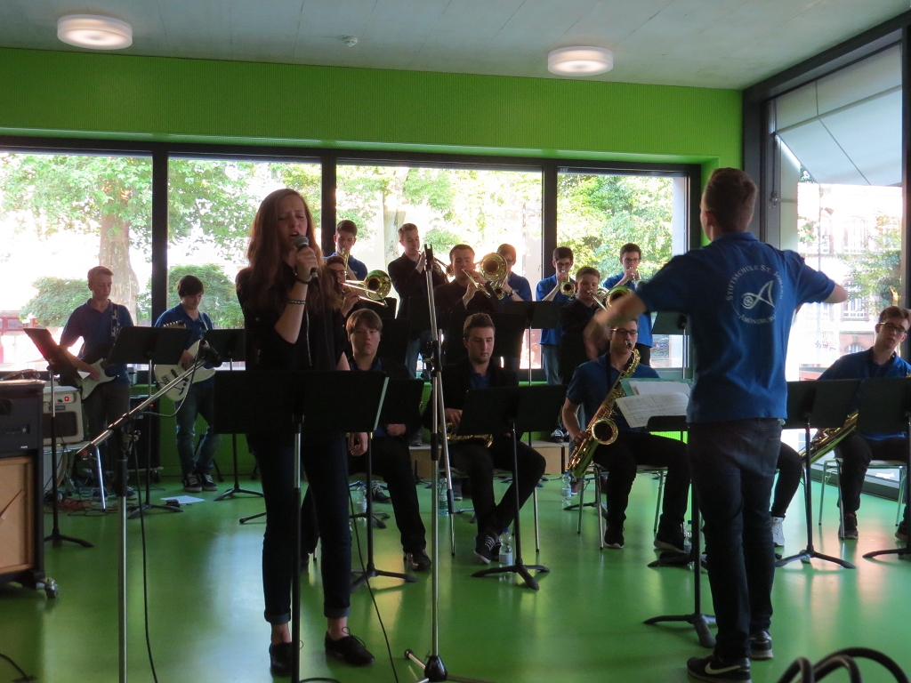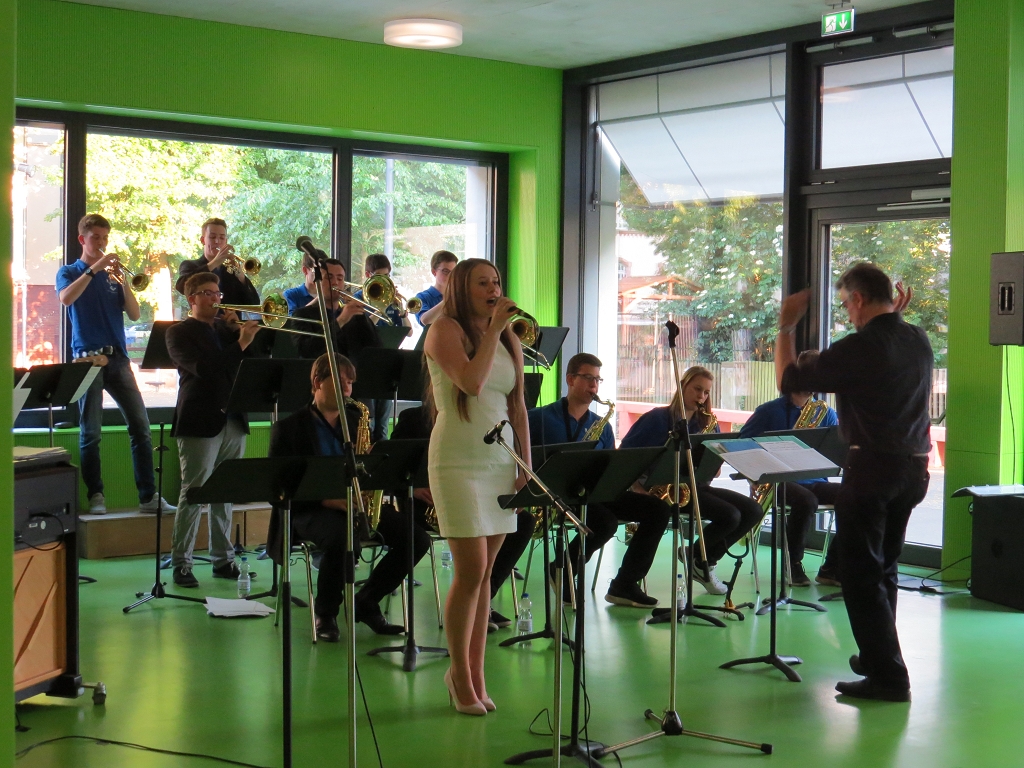 Die Bigband der MLS unter der Leitung von Stefan Koch spielte im zweiten Teil ihr Programm, welches mit groovigen lateinamerikanischen Rhythmen das Jazz liebende Publikum für sich einnahm. Das nicht ganz vollzählige Ensemble überzeugte durch seinen weichen, harmonischen Sound und seine klaren Rhythmen, die bei manchen Stücken alles andere als ‘einfach’ waren.