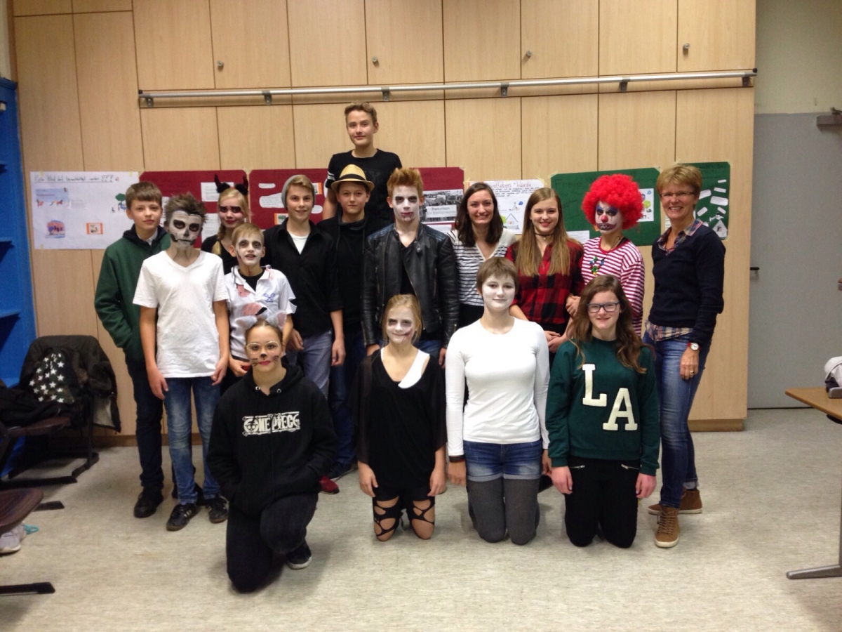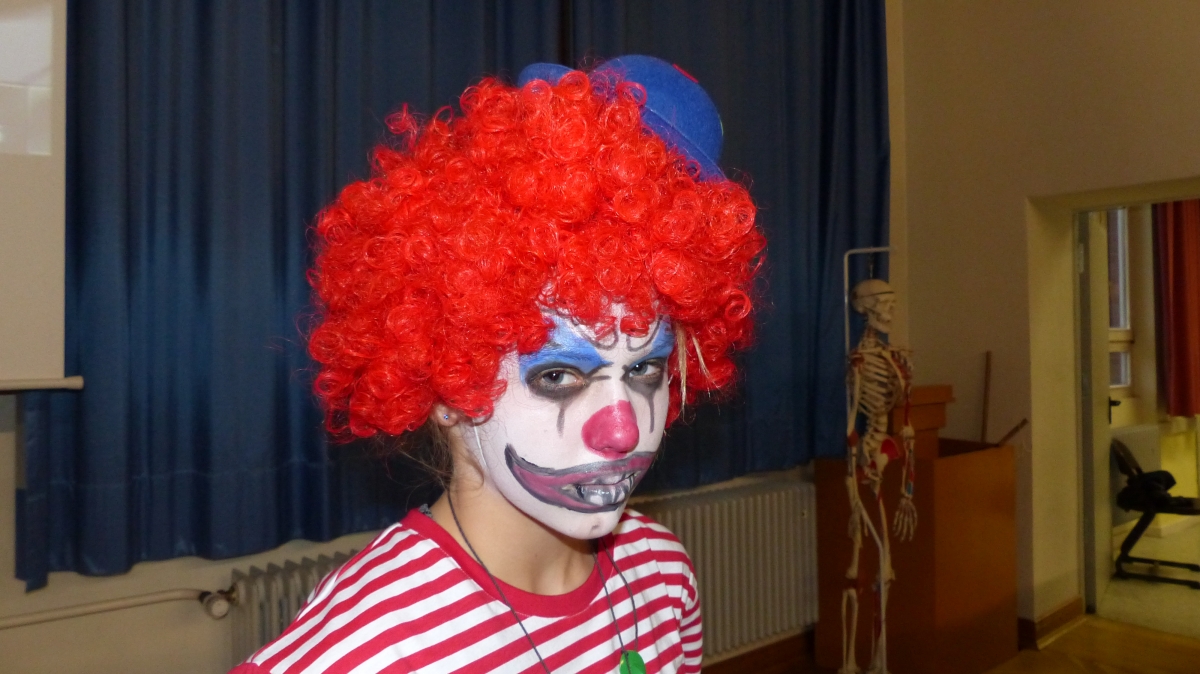 Nach nur sechs Wochen und einigen Zusatzproben war es dann soweit: Die Programme waren gedruckt, Technik und Musik waren perfekt abgestimmt, jeder konnte seine Rolle, Kamera und Maske waren bestellt. Am 18.10.2015 fand um 19 Uhr die Uraufführung des Stückes « Le 21e enfer des clowns » („Die 21.Hölle der Clowns“) in der Aula der MLS statt und wurde mit großem Beifall belohnt. Mit den mitgebrachten Köstlichkeiten gab es einen fröhlichen Ausklang.