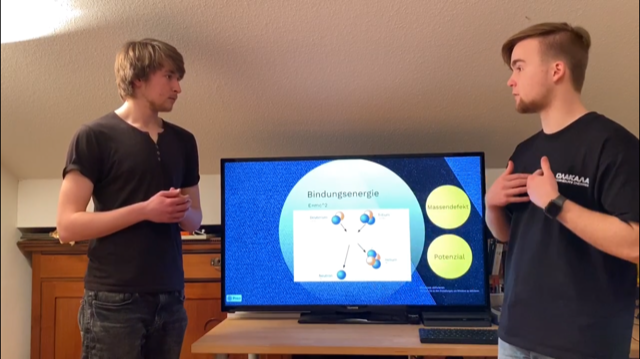 Mit ihrer Präsentation zum Thema „Kernfusion“ bewiesen Bosko van Andel und Benedikt Kayser (beide Q2) ihr Präsentationskönnen im Hessenfinale und qualifizierten sich für das Bundesfinale im Präsentationswettbewerb „Jugend präsentiert“.