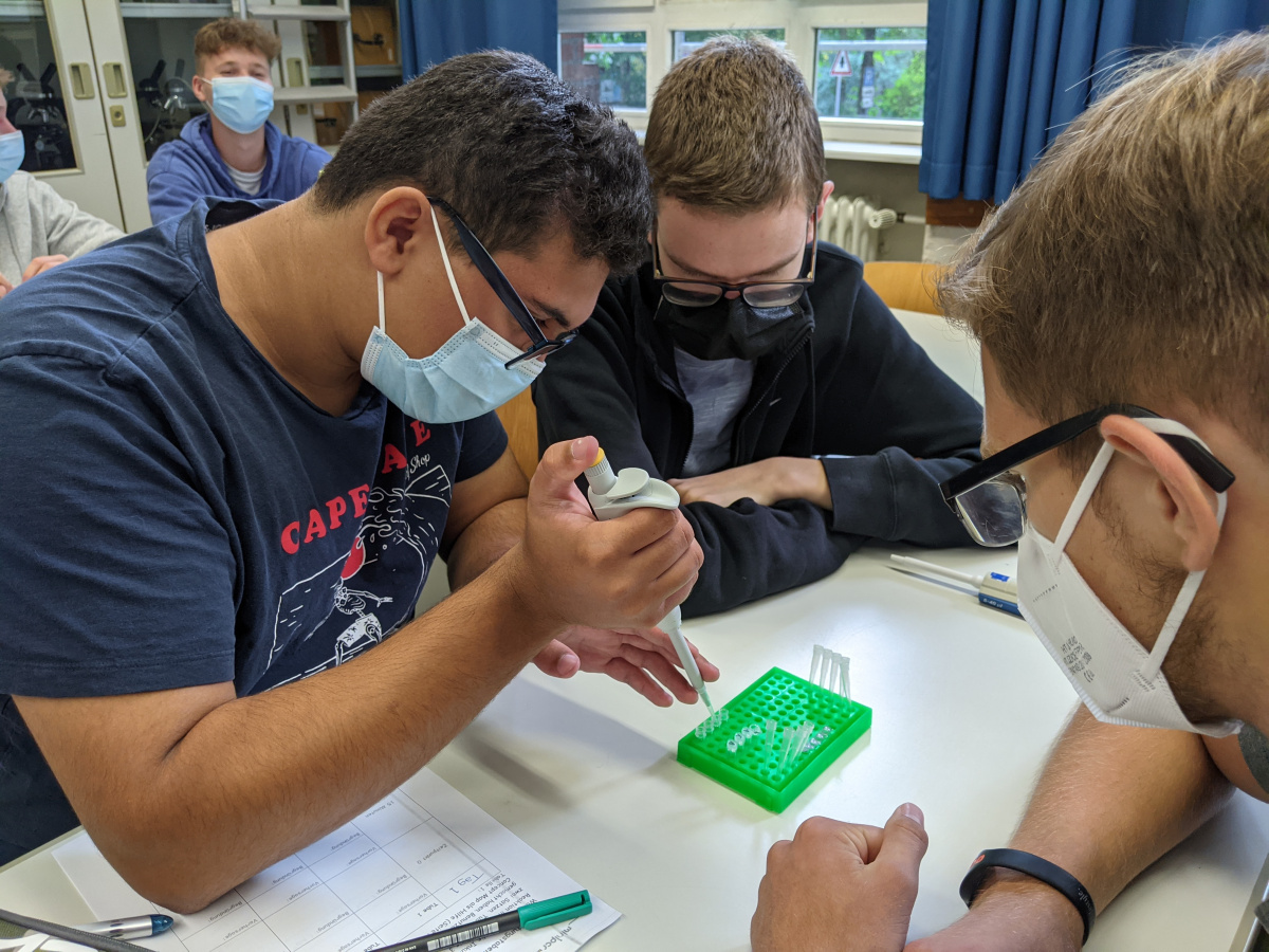 Für die Schüler*innen des Biologie-LK war das kurze Projekt eine willkommene Abwechslung zum gewöhnlichen Biologieunterricht. Insbesondere da aufgrund der Corona-Pandemie, der üblicherweise im Biologie LK besuchte Genetikkurs der grünen Schule entfallen musste, war es schön molekulargenetische Versuche nachholen zu können. Abschließend erhielten die Schüler*innen noch die Möglichkeit sich bei den Studierenden über das Studium in Biologie, Chemie oder Medizin zu informieren.