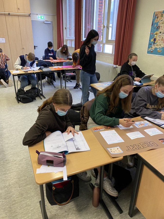 Seit dem Schuljahr 2021/2022 findet an der MLS das Pilotprojekt Bilingualer Erdkundeunterricht in der Klasse 10 statt. 29 motivierte Schülerinnen und Schüler haben sich bereits vor den Sommerferien freiwillig dazu entschieden, anstelle des deutschen Erdkundeunterrichts den erstmalig von Frau Heller angebotenen bilingualen Kurs auf Englisch zu besuchen. Dieser liegt parallel zum deutschen Erdkundeunterricht und behandelt dieselben Themen. Ein Themenbeispiel ist das Leben in verschiedenen Landschaftszonen, für das von den Schülerinnen und Schülern in Kleingruppen gemeinsam Poster vorbereitet und dann in einem Galeriegang auf Englisch präsentiert wurden.
