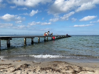 Freitags konnten wir uns die Wachablöse an der Amalienborg ansehen und anschließend mit dem Zug in das Lousiana Museum of Modern Art fahren, bei dem uns besonders der Standort am Meer und die Verbindung zwischen Kunst und Natur gefiel. Währenddessen konnten die anderen auf eigene Faust in Dreiergruppen die Stadt erkunden. Gemeinsam fuhren wir später noch mit der Metro an die Küste, wo wir im Meer (voll kalt) schwimmen, Sandburgen bauen und spazieren gehen konnten.