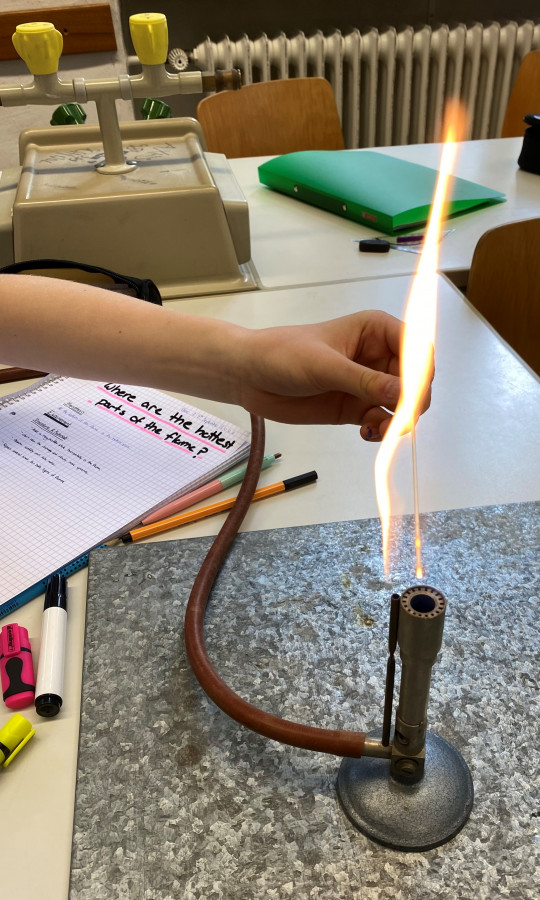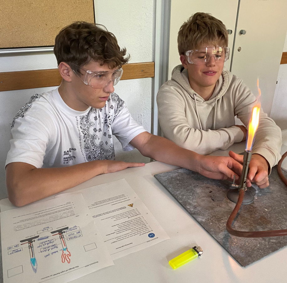 26 Schüler*innen der Jahrgansstufe 8 erproben im Rahmen eines Pilotprojekts in diesem Schuljahr erstmals Chemieunterricht in englischer Sprache. Mein erster Eindruck: Gerade für den Einstiegsunterricht im Fach Chemie eignet sich der zweisprachige Ansatz sehr gut, da die Einführung der chemischen Fachsprache auch im deutschen Unterricht notwendig ist. Die Beleuchtung der Fachbegriffe aus verschiedenen sprachlichen Perspektiven hilft den Schüler*innen dabei, die Bedeutung der Fachbegriffe zu erfassen. Die Schüler*innen haben sichtlich Spaß daran, im Unterricht Englisch zu sprechen, aber auch Deutsch ist erlaubt. Vor allem beim Erlernen von neuen Inhalten greifen einige Lernende lieber auf Deutsch zurück. Das ist vollkommend in Ordnung, denn die Alltagssprache ist die Sprache des Lernens. Ist der Inhalt erfasst, hilft die Formulierung in der zweiten Sprache das neu Erlernte zu festigen. Die vielen Experimentierphasen im Chemieunterricht der 8. Klassen geben Raum und Zeit, sich über Beobachtungen und Erklärungen in englischer Sprache auszutauschen, und sie werden gerne dazu genutzt, neu erlernte Fachbegriffe anzuwenden (siehe Videos). Sollten sich diese ersten sehr positiven Eindrücke im Laufe des Schuljahrs festigen, könnte aus diesem Pilotprojekt ein fester Bestandteil des bilingualen Angebots der MLS werden.