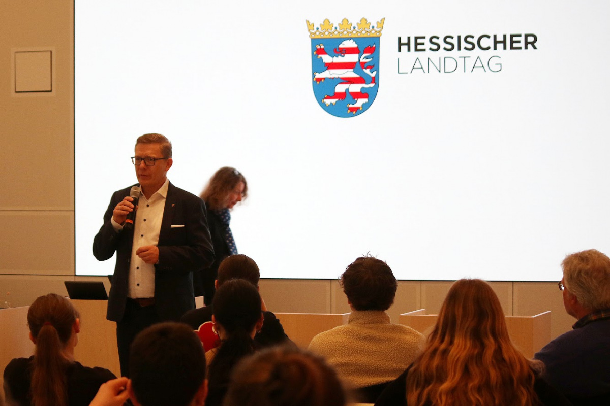 Klassen 10b und 10c im Hessischen Landtag in Wiesbaden