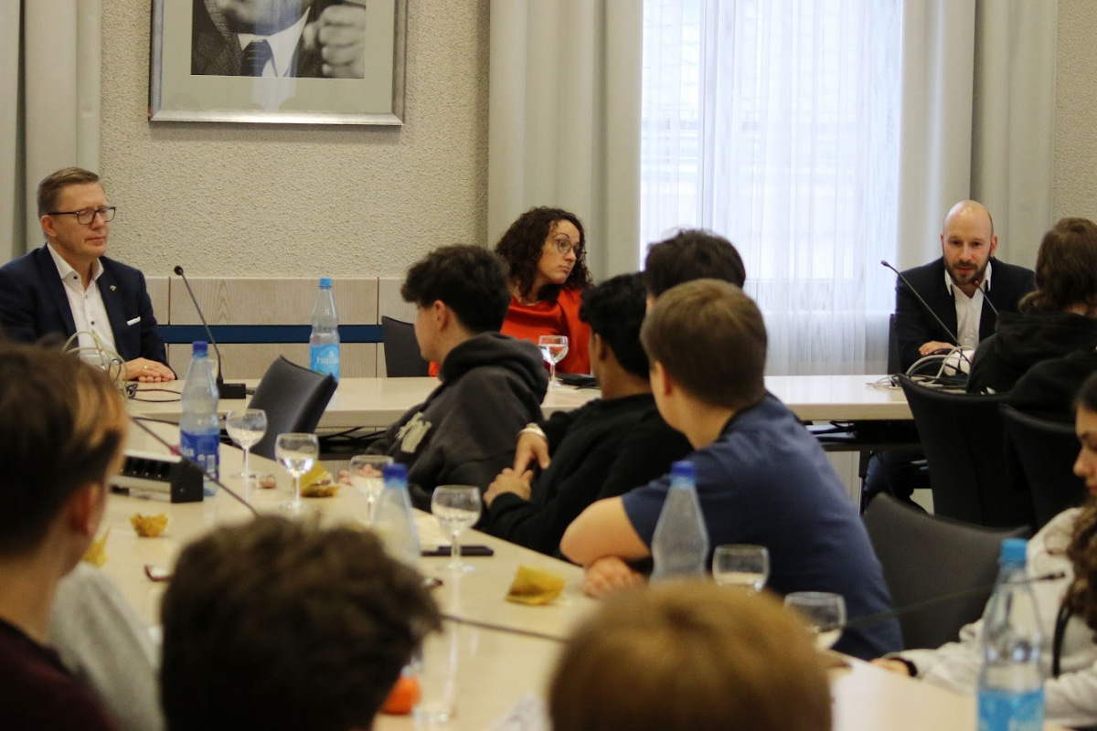 Zum Abschluss fand eine angeregte Diskussionsrunde im SPD-Fraktionssitzungssaal mit den Abgeordneten des Wahlkreises 13, Marburg-Biedenkopf II, Dirk Bamberger (CDU), Angela Dorn (Bündnis 90/Die Grünen) und Sebastian Sack (SPD) statt. Die engagierten Fragen der jungen Besucherinnen und Besucher beantworteten die Berufspolitiker sehr persönlich und authentisch, was mit freundlichem Beifall der Gäste am Schluss honoriert wurde.