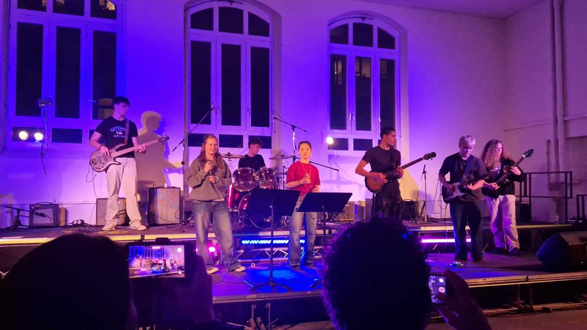 Vor ca. 100 Gästen präsentierte die aktuelle Besetzung der Band* ein vielfältiges Programm, das von 80er-Jahre Indie-Rock (The Cure, U2), über Pop-Rock-Songs von den Killers bis hin zu Hard-Rock (Black Sabbath) und Heavy Metal (Metallica) reichte. Auch Songs deutscher Bands (Wir sind Helden, Die Ärzte) wurden gelungen dargeboten. Unterstützt wurden die Band dabei teilweise von ehemaligen Mitgliedern der Rock-AG, z.B. David Schäfer (git) oder Stian Mumenthaler-Sierra (git).